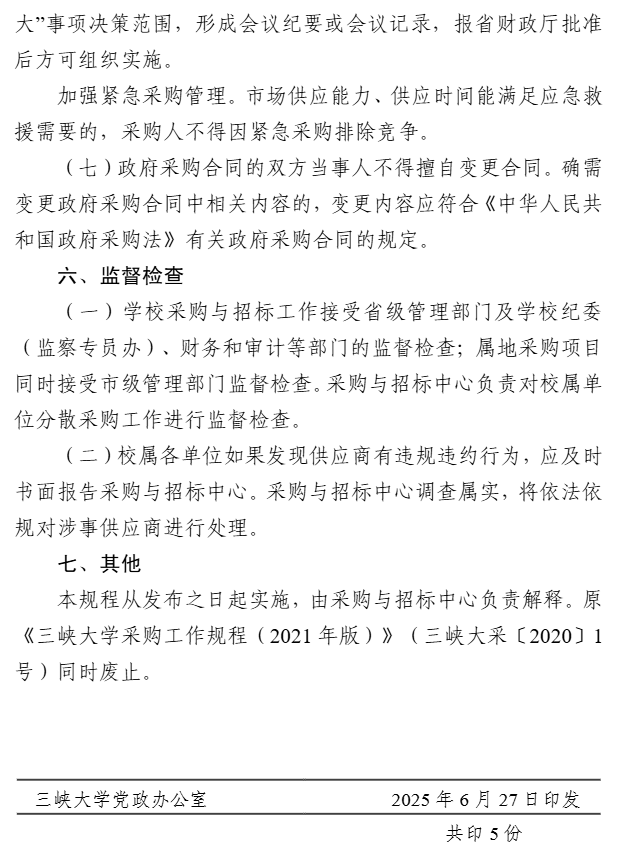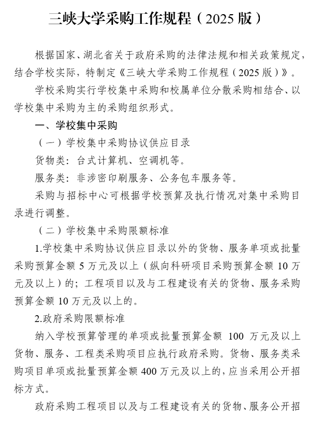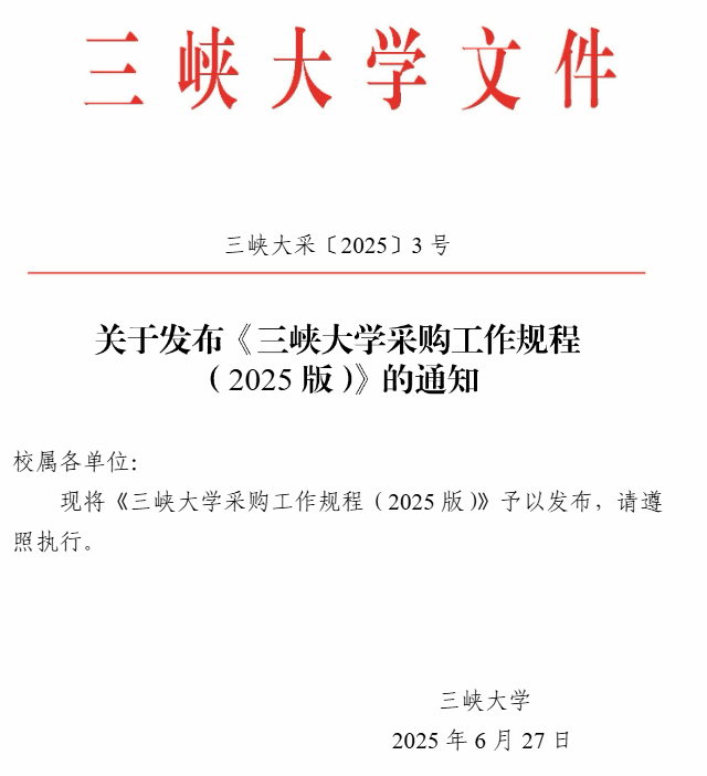 关于发布《三峡大学采购工作规程 (2025版)》的通知