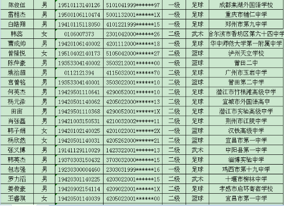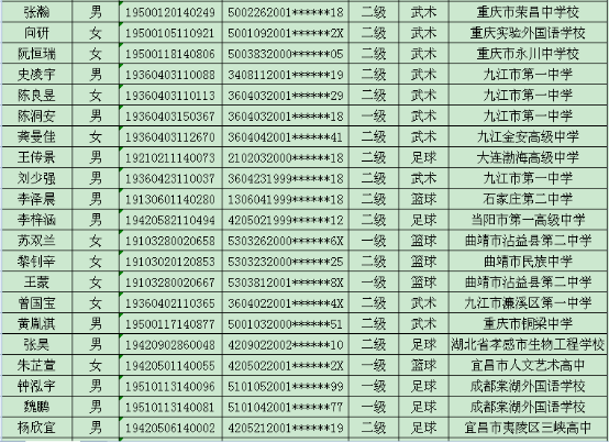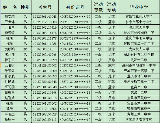 经我校认真严谨的资格审查,现将符合我校2019年高水平运动队招生测试资格的考生名单公布如下,